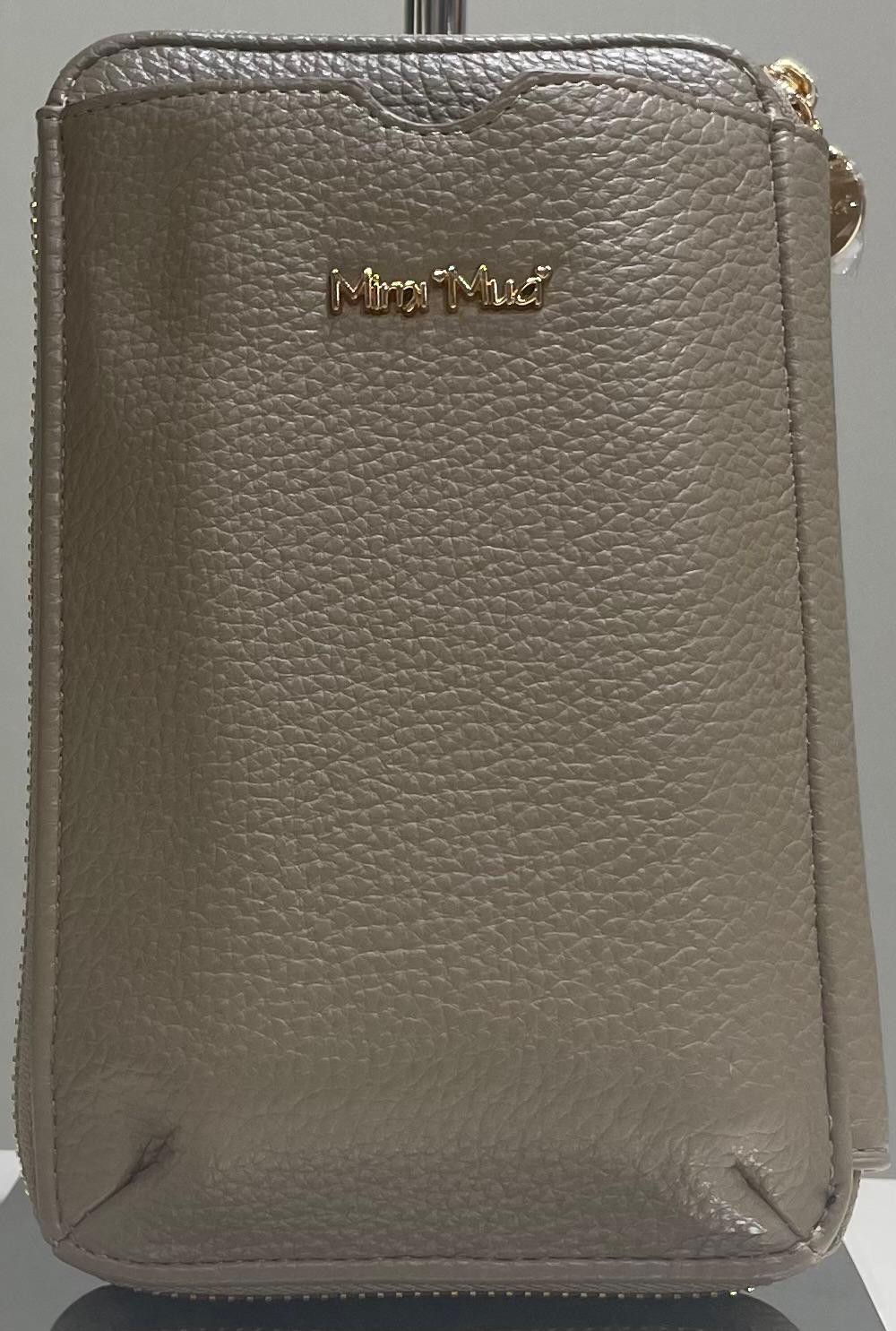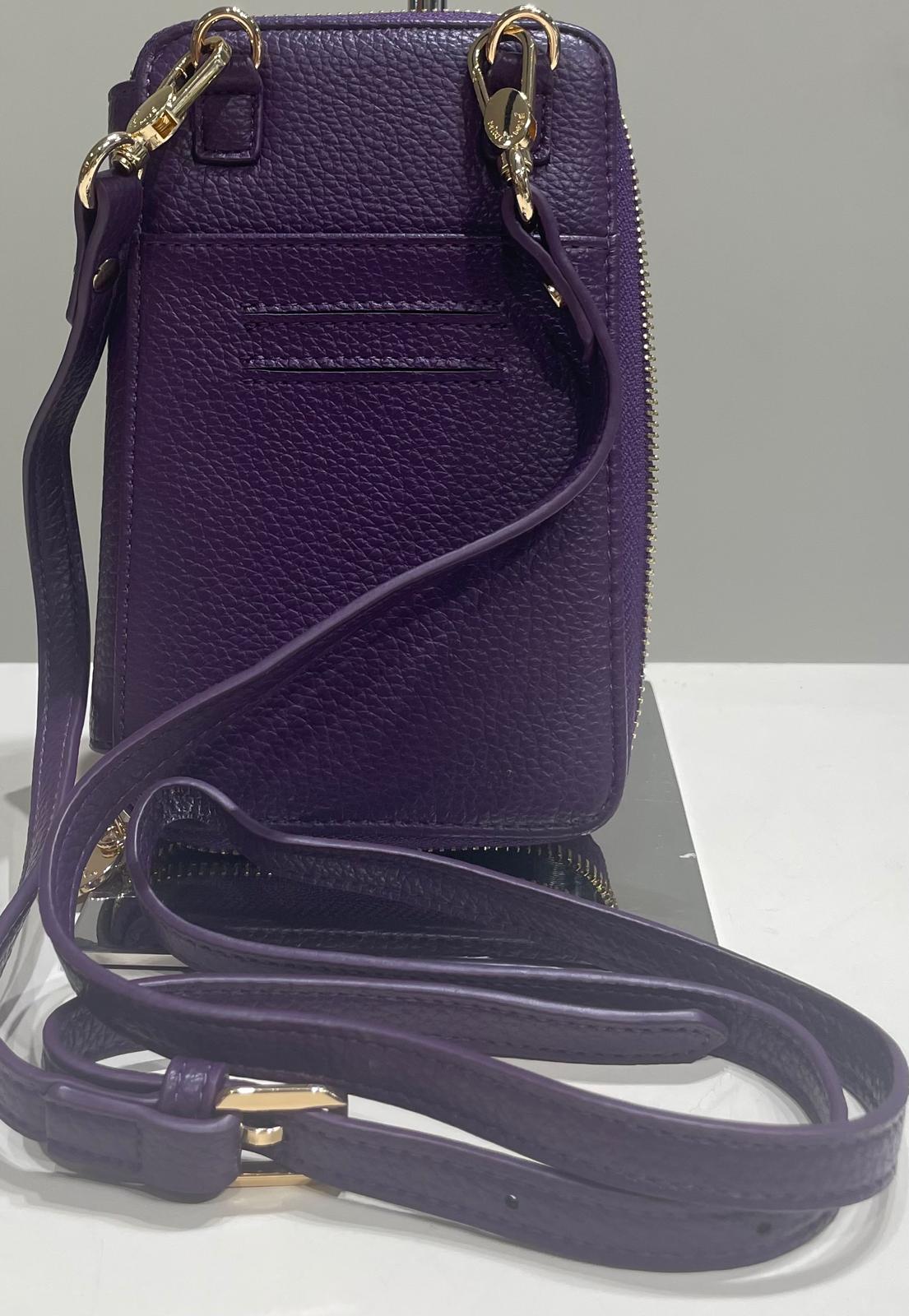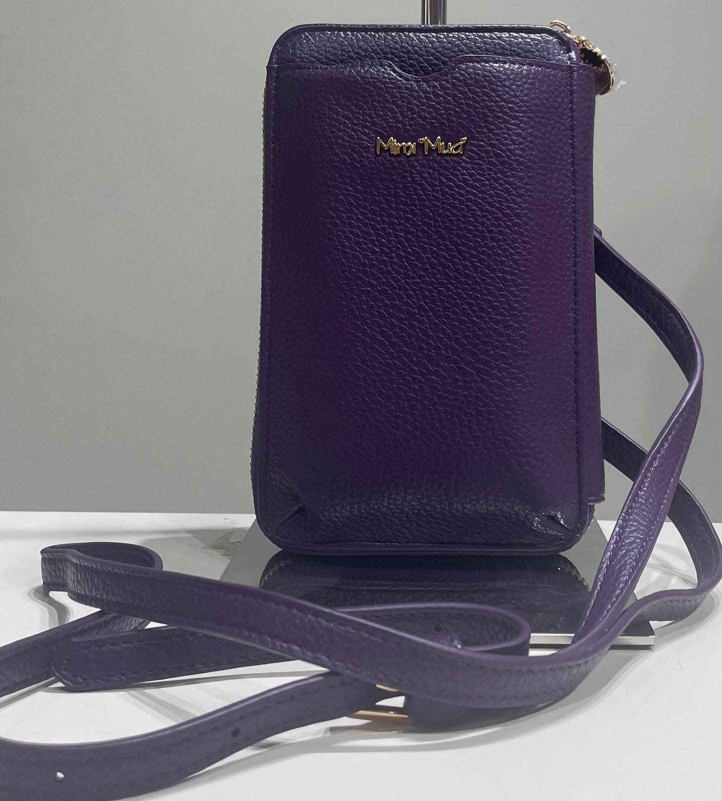 Portacellulare con tracolla, zip con portacarte e documenti, colori: viola, taupe, blu, nero, verde militare.