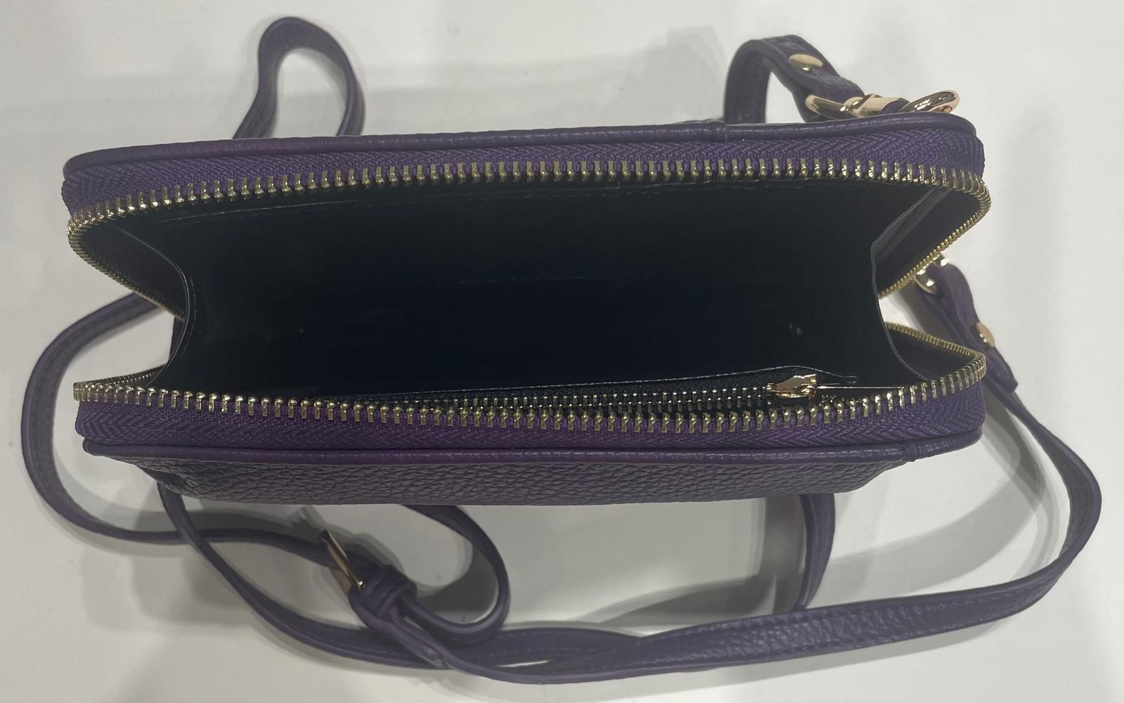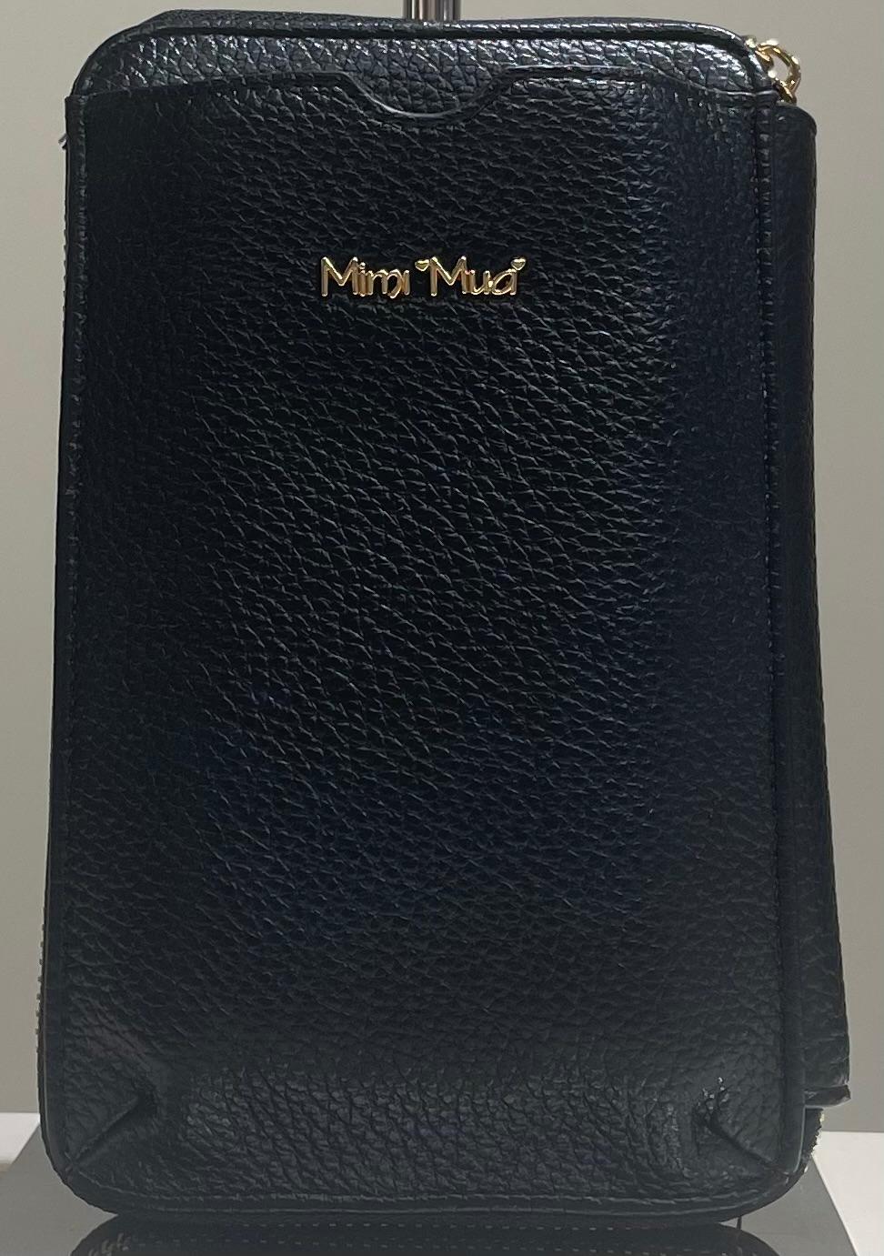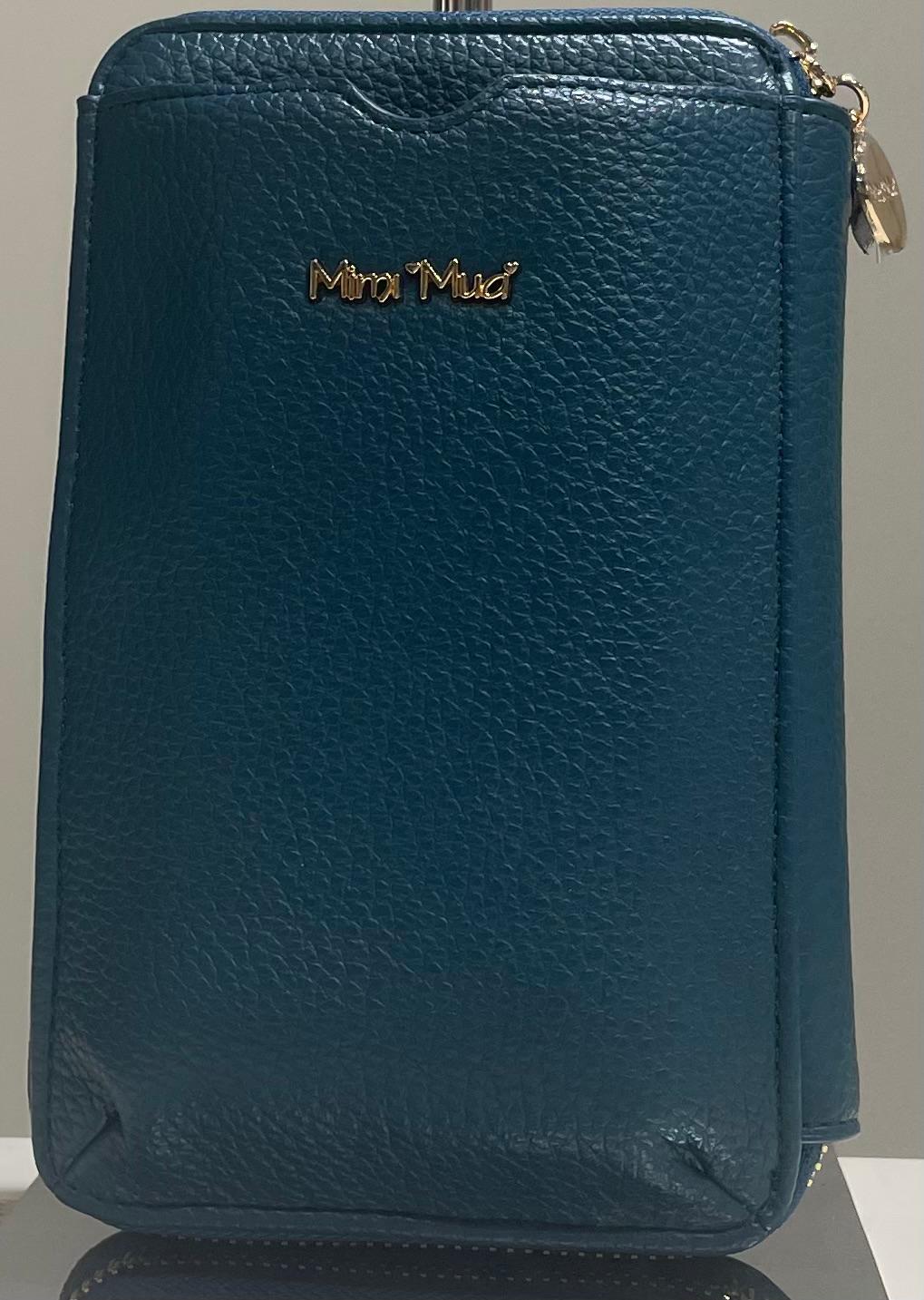 Portacellulare con tracolla, zip con portacarte e documenti, colori: viola, taupe, blu, nero, verde militare.