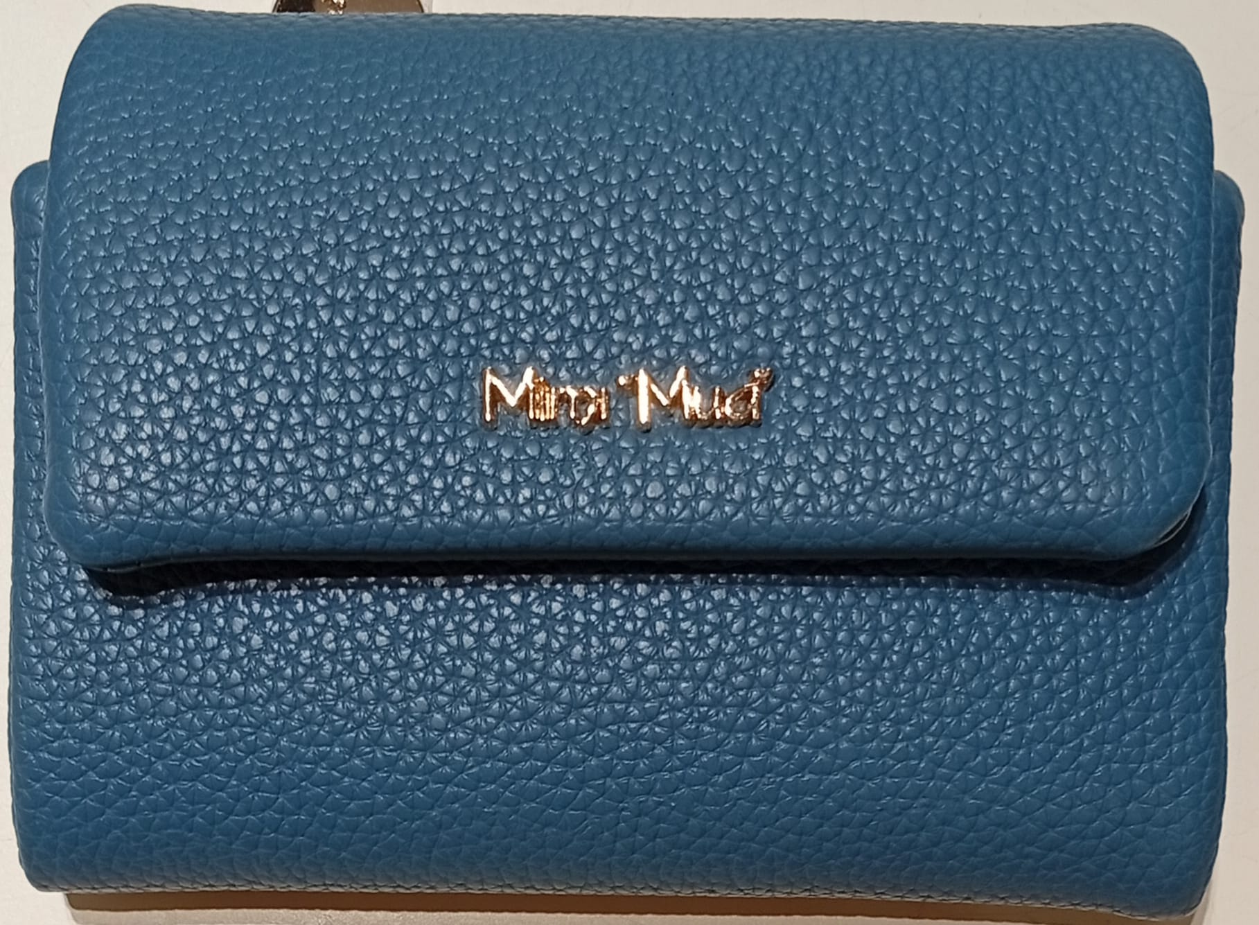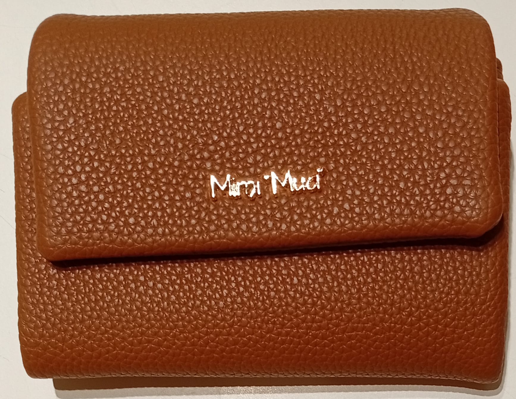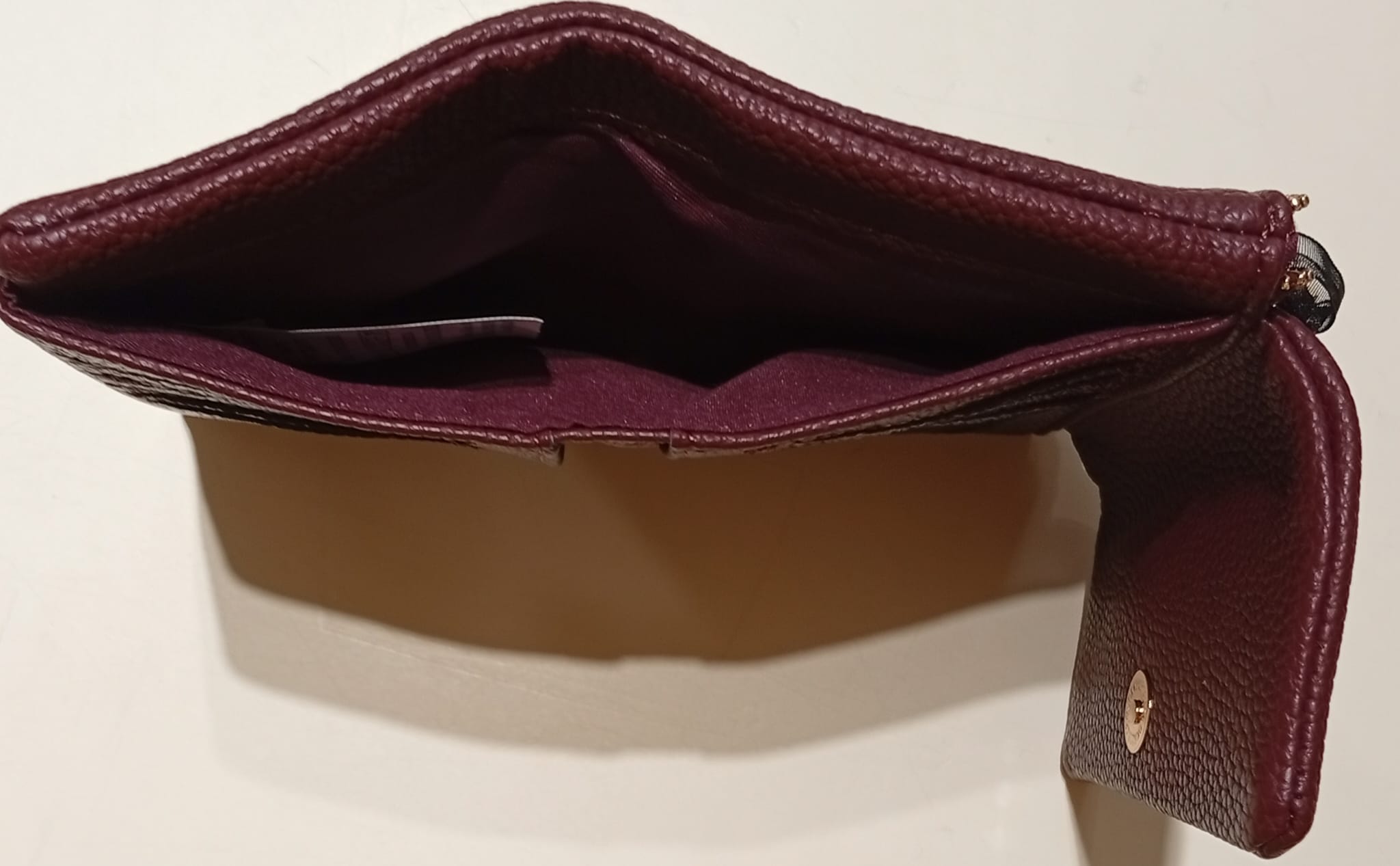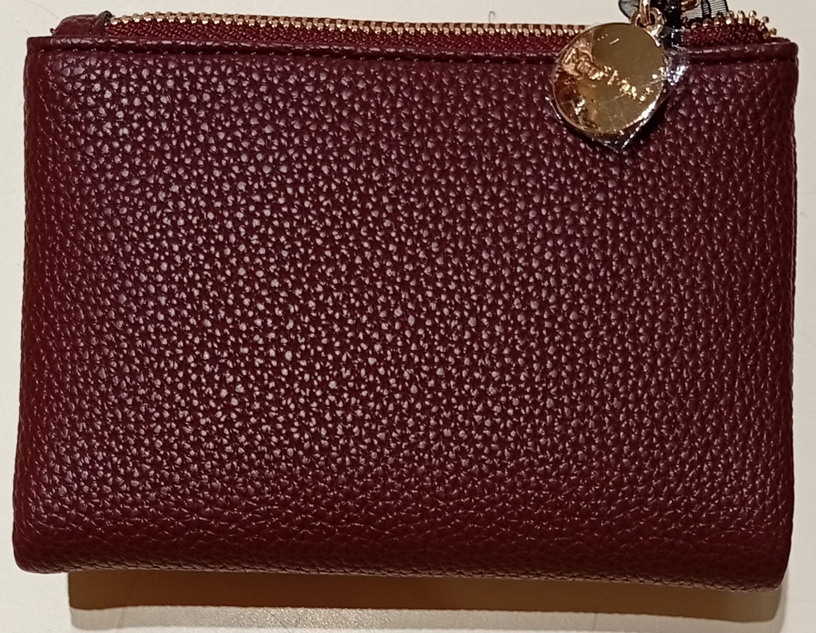 Portafoglio donna, grandezza media, con patta, zip e portacarte, colori: burgundy, ottanio, cuoio, nero, beige, argento.