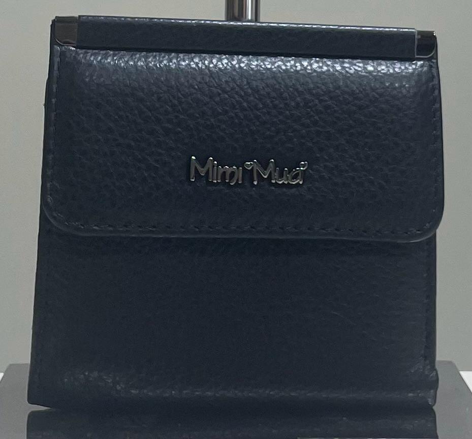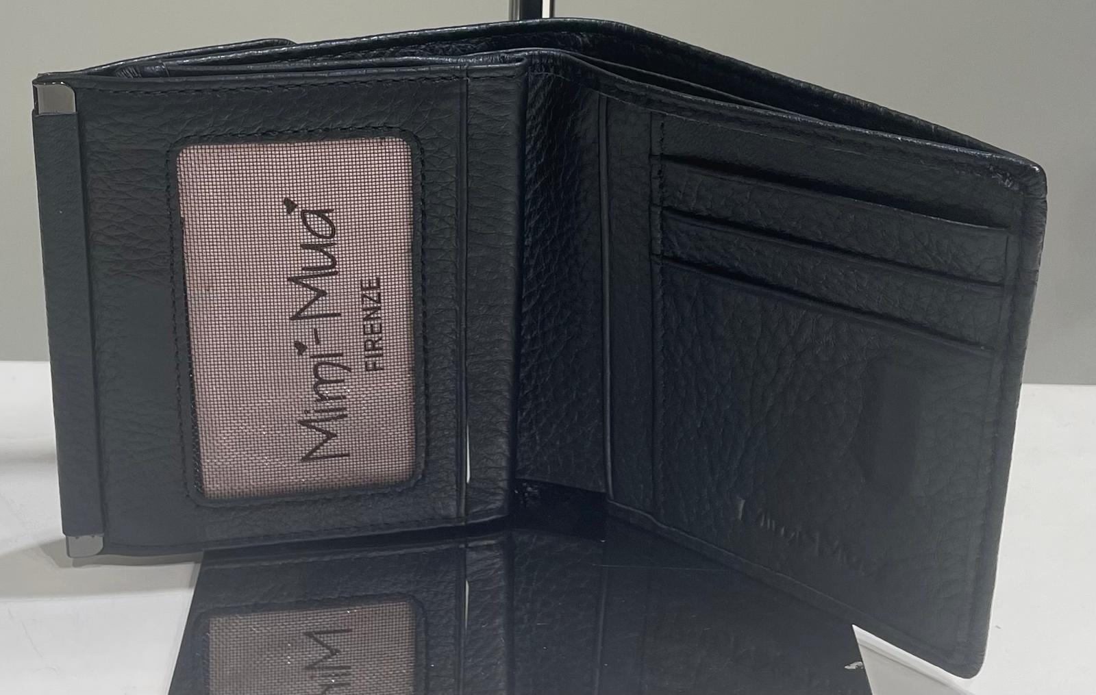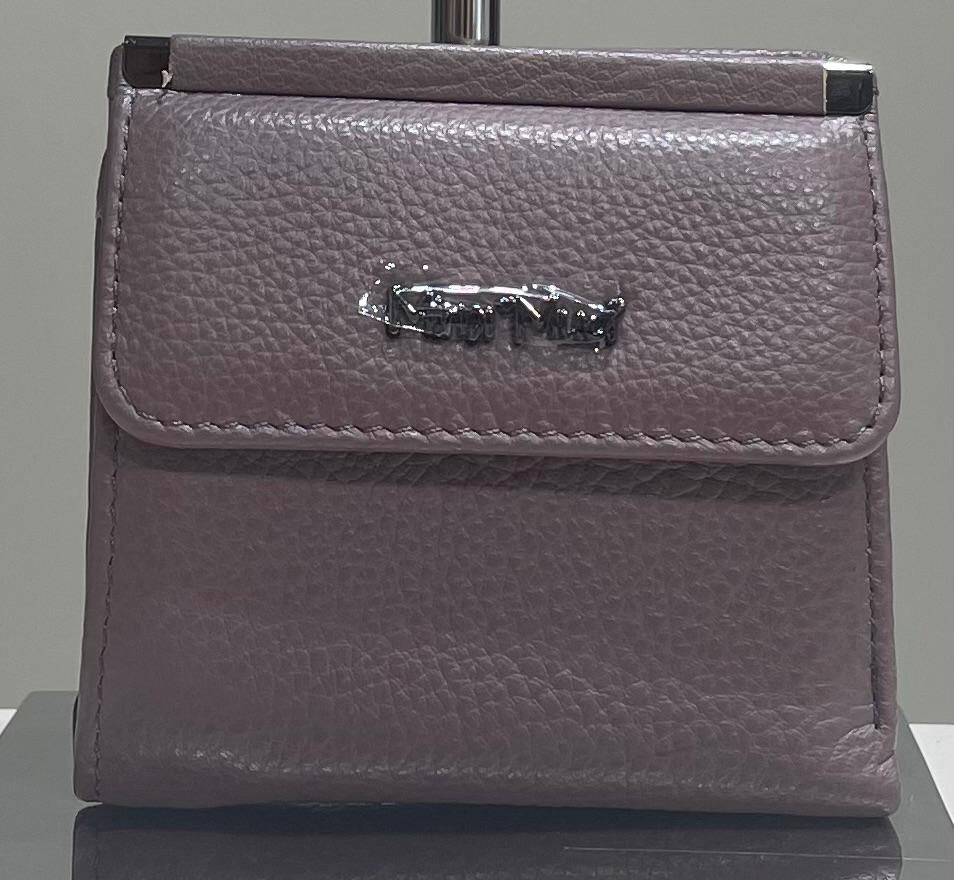 Portafoglio compatto, chiusura con calamita, con portamonete, portacarte e documenti, tessuto pelle, tinta unita, colore: nero, malva.